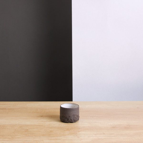 Οι βραχώδεις σχηματισμοί του πυρόλιθου είναι η έμπνευση γι αυτή την κούπα εσπρέσο και μάλιστα ένας ιδιαίτερος βράχος στην τοποθεσία Πουριά, η βάση του οποίου έχει σμιλευτεί από τα κύματα, λεία και φιλόξενη, ενώ η κορυφή παραμένει παρθένα και ανέγγιχτη. Διατίθεται σε 3 χρώματα: ανθρακί, κρεμ και μπεζ (χρώματα φωτογραφίας: ανθρακί & μπεζ). Χειροποίητη από πηλό, ψημένη στους 1220 °C, αυτή η κούπα είναι ιδανική για ένα ζεστό ή κρύο φλιτζάνι καφέ ενώ το φυσικό εξωτερικό γυάλωμα κάνει την υφή απολύτως οργανική.