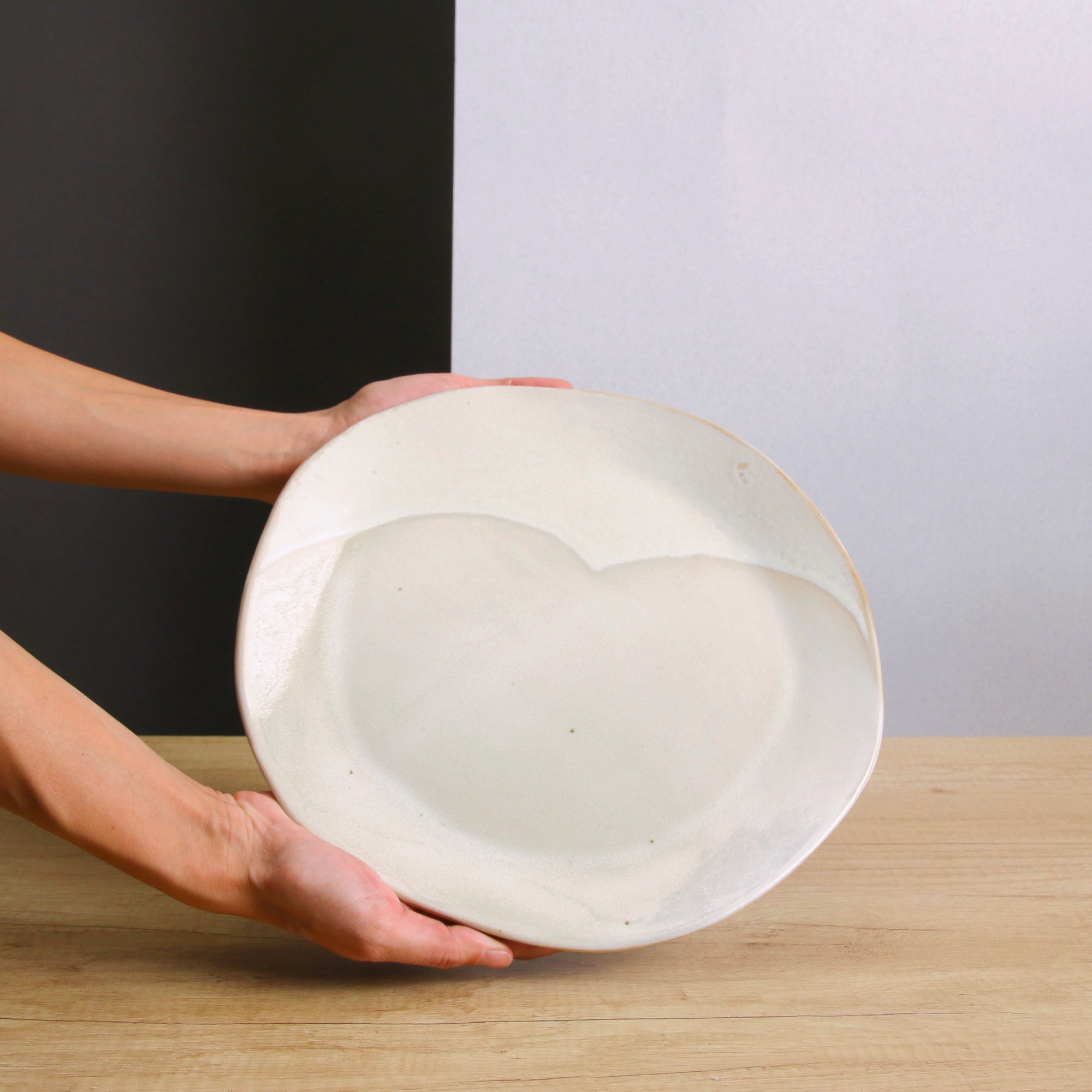 The white-washed villages and their alleys are the inspiration for the off-white, wavy-shaped plate with both glossy and matte glazing, thanks to a sophisticated technique that allows applying multiple layers of glazing. Handmade of stoneware clay, high fired at 1240 °C, it will add an artisanal note of quality and authenticity to your dinner ritual with family and friends.